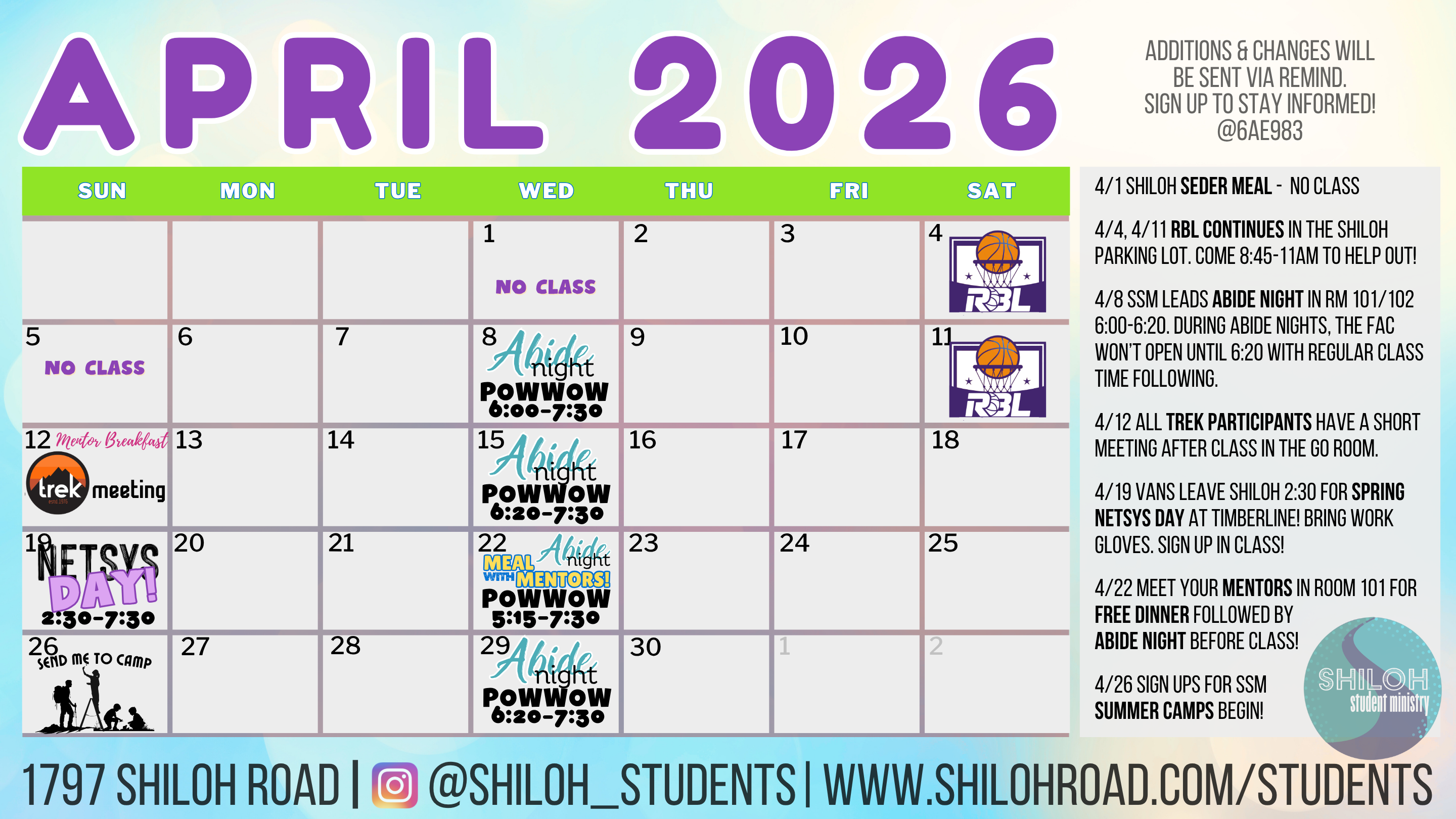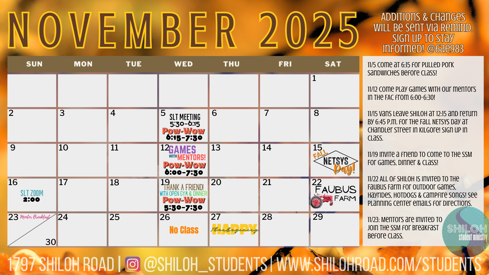 Shiloh students have many opportunities to experience God through various events: retreats, conferences, camps, and much more! We want every student to be involved in all the amazing activities we've got going on at Shiloh!